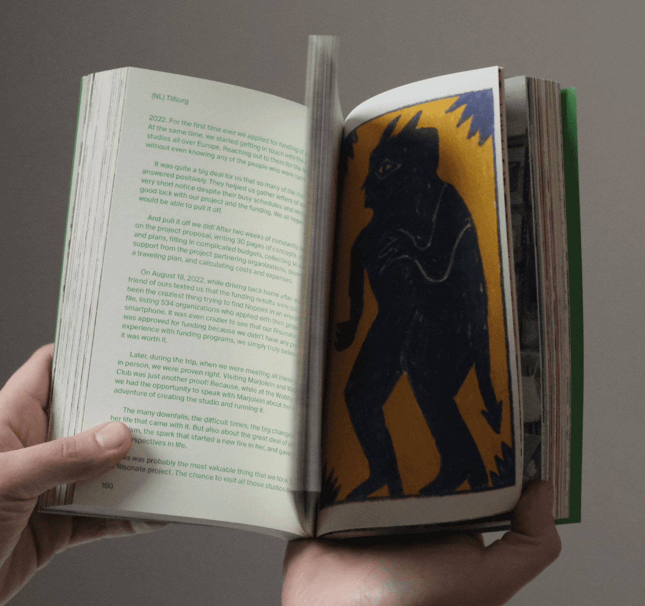 At the end, we designed a book, consisting of their travel journals, binded together with the original prints that were conceived throughout the trip.
