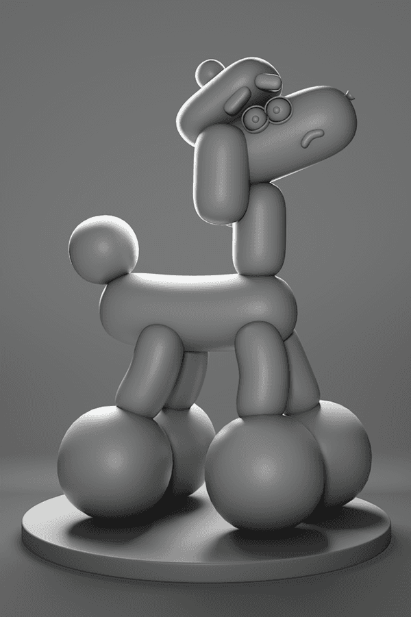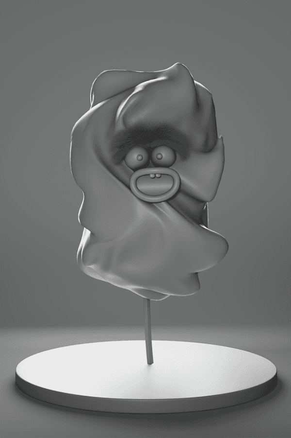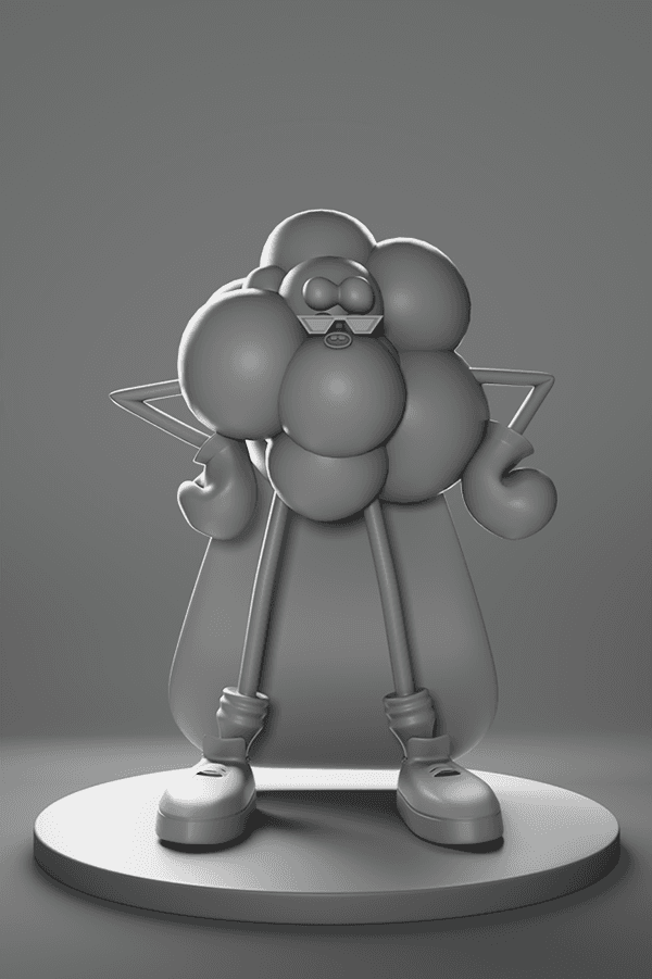 The visual language combines simple polygonal forms with paper-like textures, created in Substance 3D Painter to evoke a tactile, school-inspired papier-mâché aesthetic.
